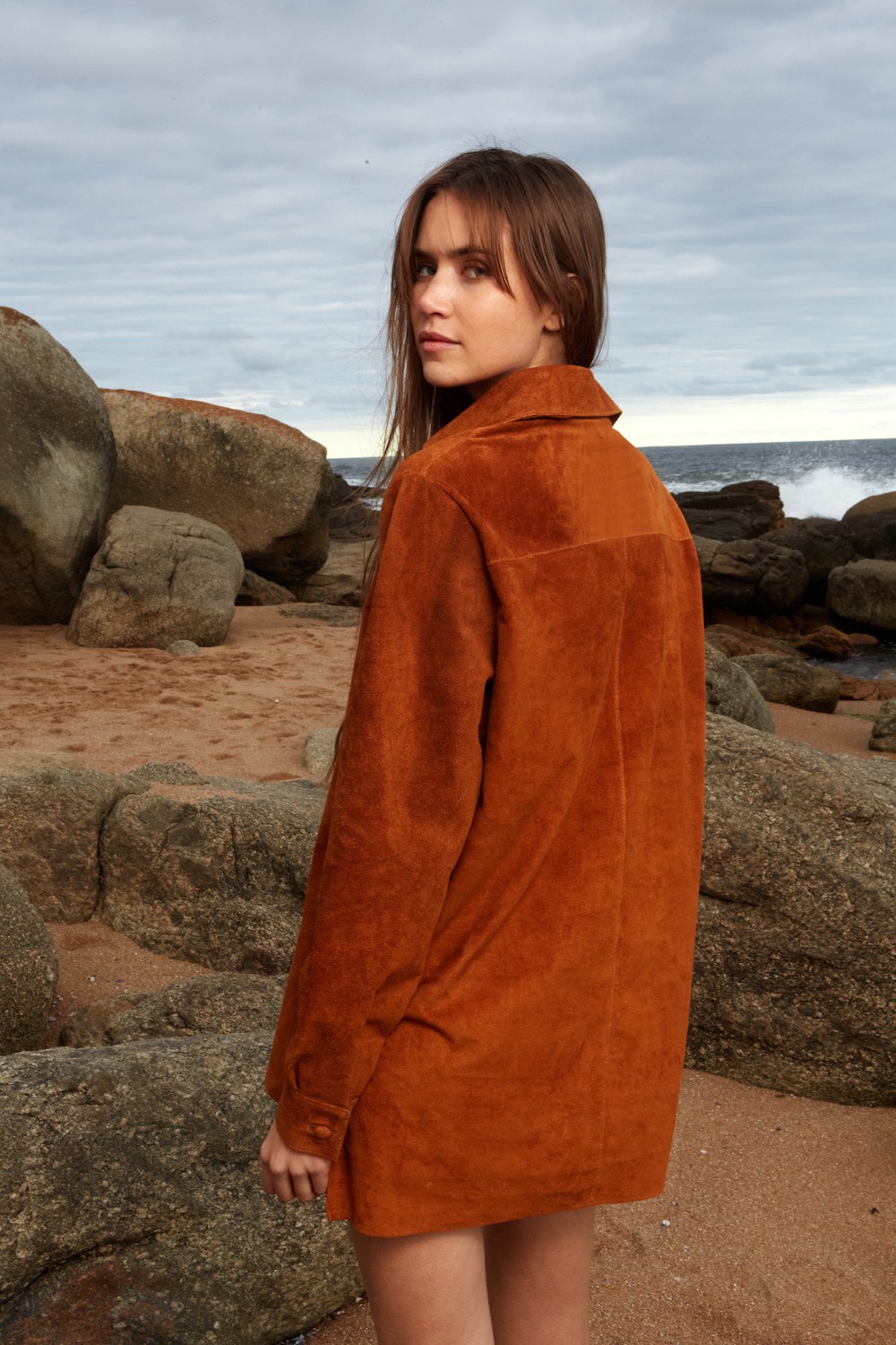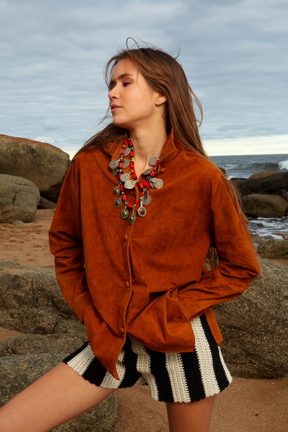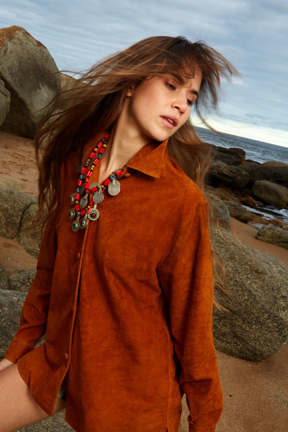 Camisa de cuero suede holgada con botones forrados. Extremadamente suave y comfy.
