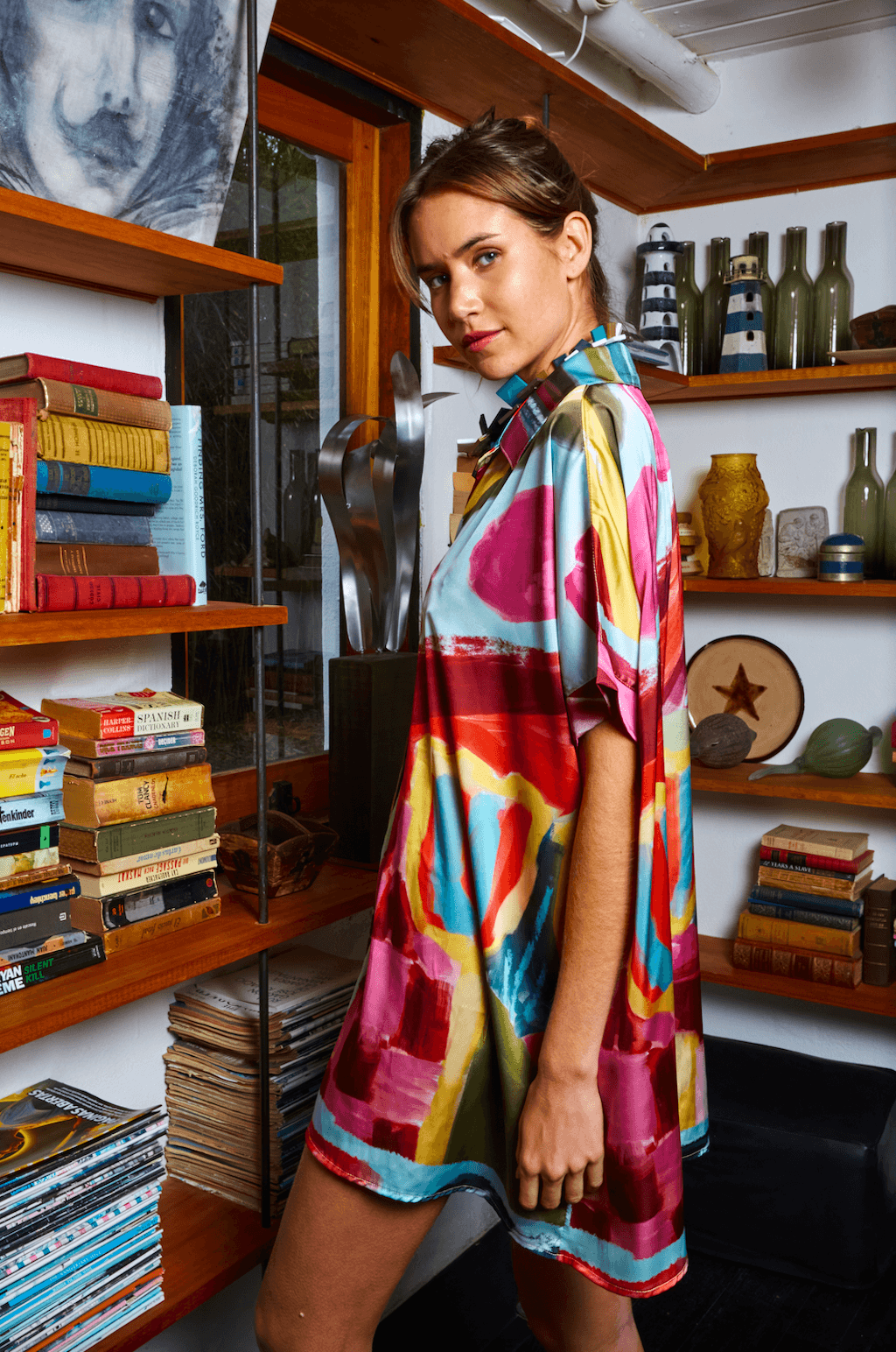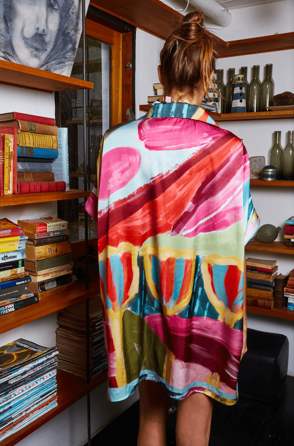 Camisola estampada en seda para usar 24/7, como camisa corta o vestido. Talle único, calce holgado. Estampa exclusiva the farra en colaboración con @hola.marte.