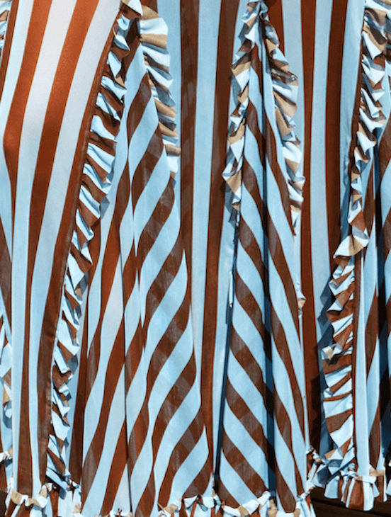 Pantalón de tul rallado con volados en el ruedo. Corte en evasé. Estampa exclusiva the farra. Al ser elastizado se adapta muy bien a varios talles.
