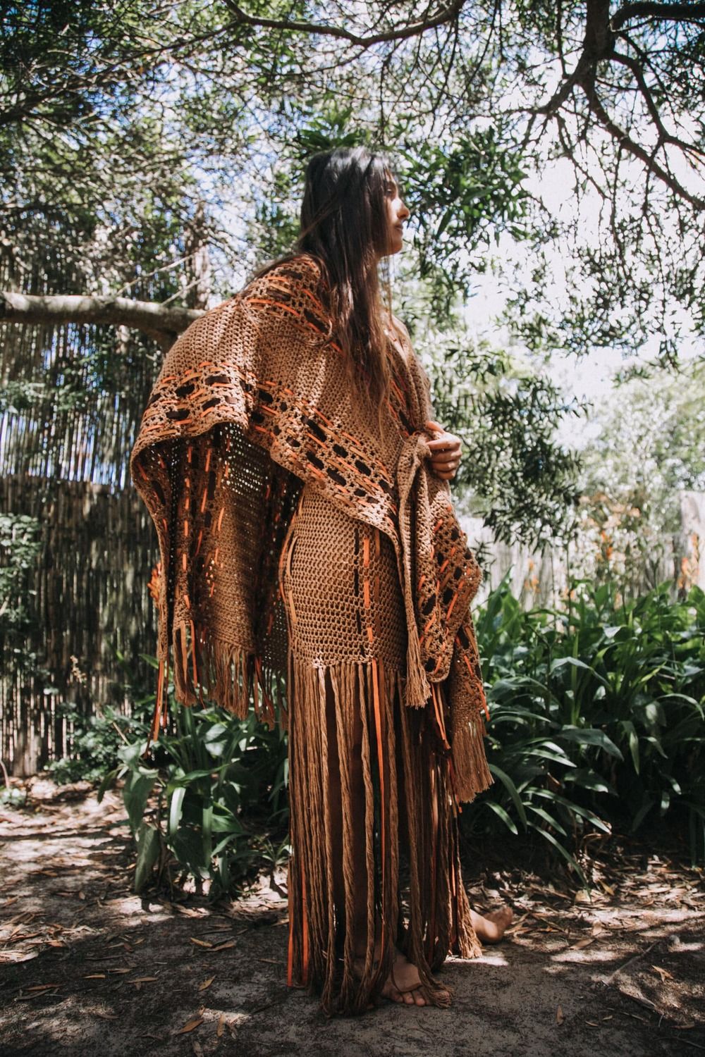 Pollera de 100% algodón intervenida en hilado de cuero de napa ovina. Elástico en cintura. Talle a medida