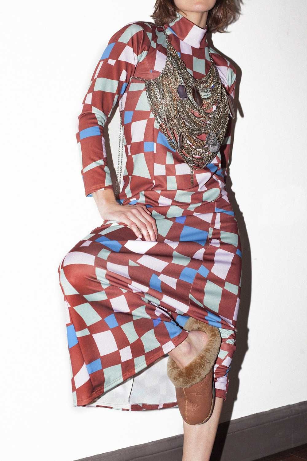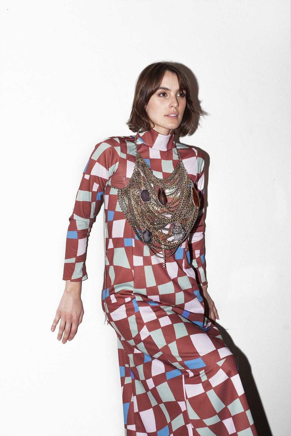 Vestido Chess strech estampada de único talle diseñada y confeccionada en Uruguay.